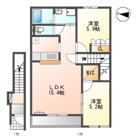 | 間取り | 2LDK | 間取り詳細 | LDK15.2 洋室5.9 洋室5.2 |